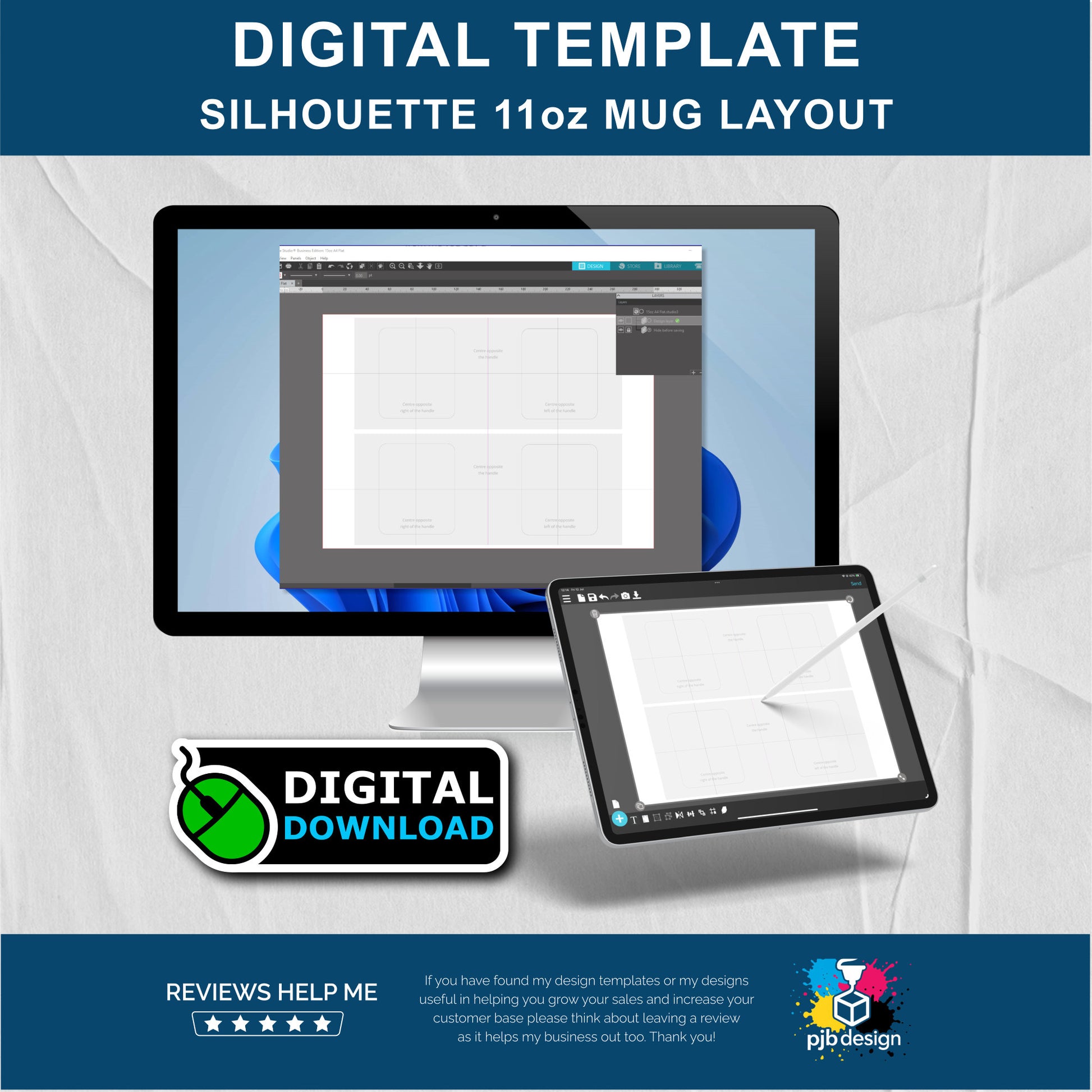 Take the stress away and allocate your time better with our range of software specific mug layout templates. These have been specialy designed to make it eaier to centre your designs on each panel either side of the handle - giving you the perfect mug.